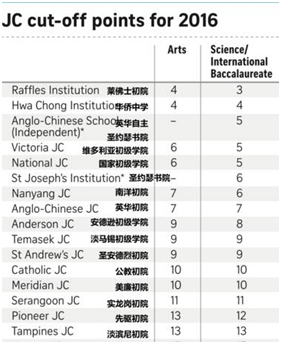 下图为2016年新加坡顶尖初级学院排名: